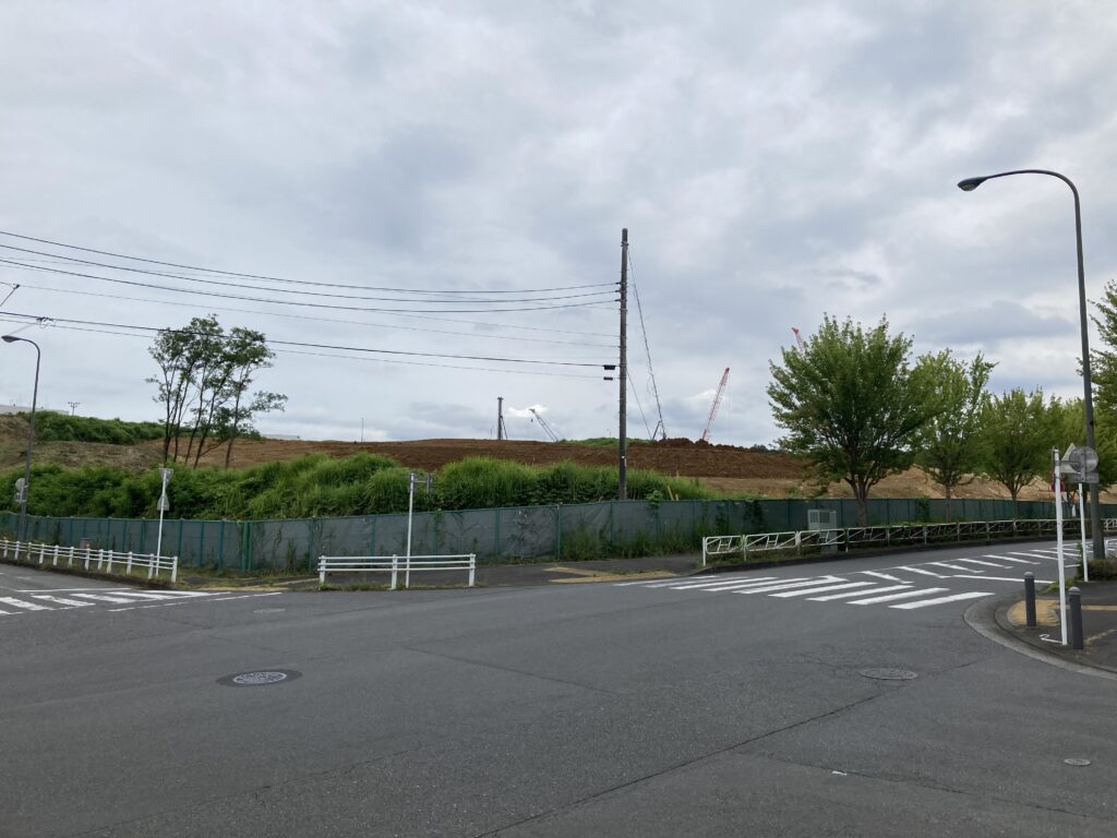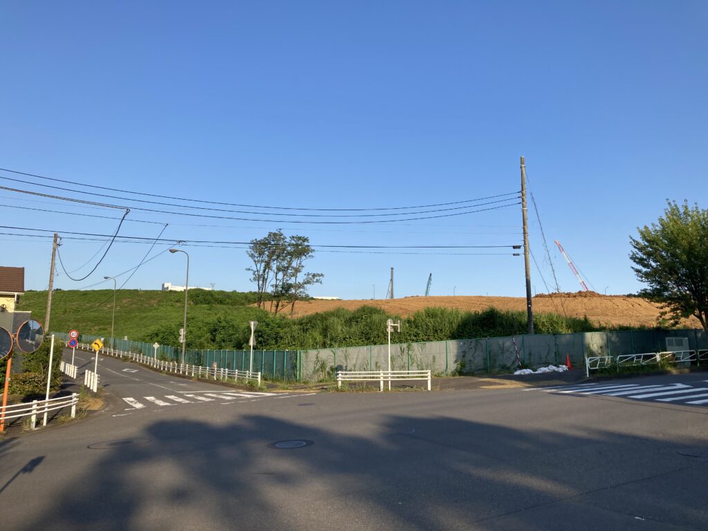 別のアングル。東京消防庁の建物を左折して、ビバモール建設予定地を縦断している道路からの眺めです。